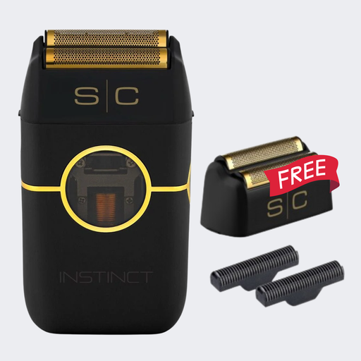 StyleCraft Instinct Metal Double Foil Shaver (SC807) BLACK with FREE Replacement Foil & Cutter Set